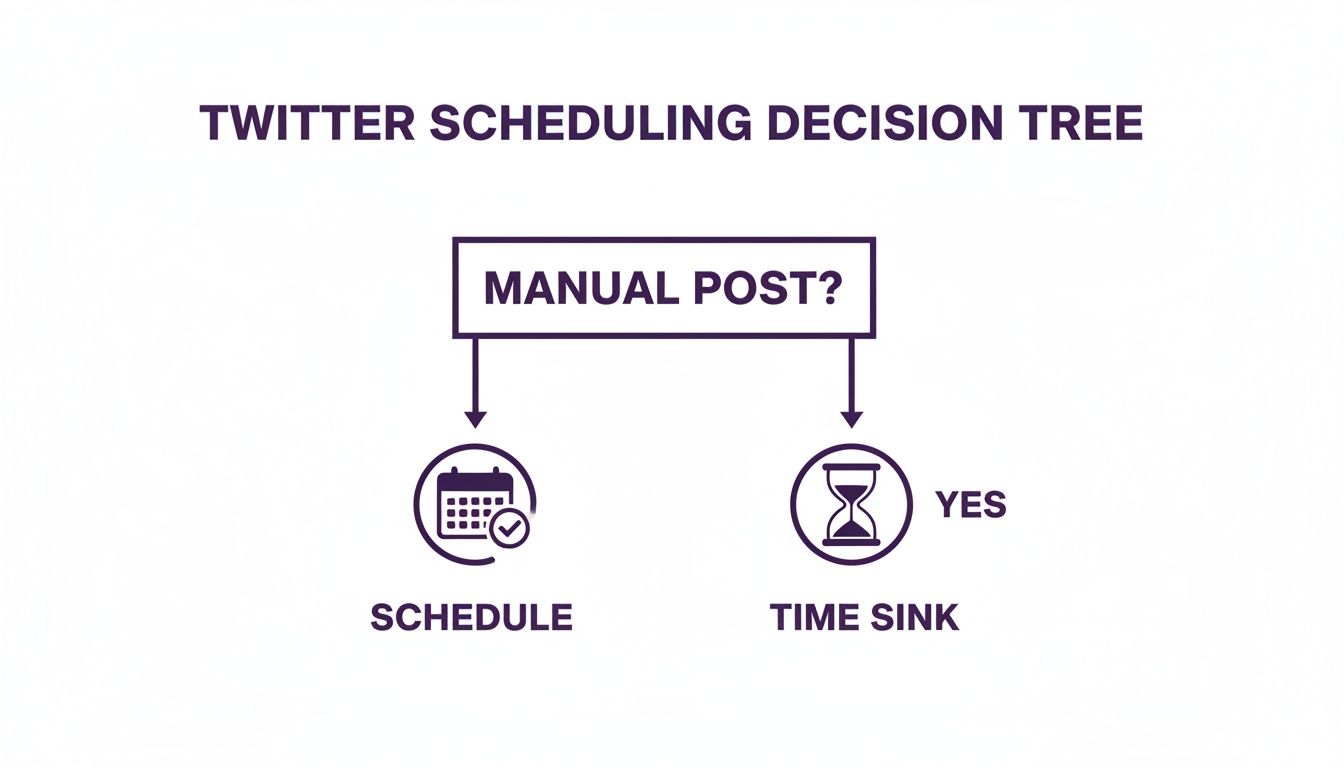 Your time is your most valuable asset. Manually tweeting every day is a time sink that pulls you away from high-impact work like closing deals or product development. Scheduling isn't a shortcut; it's a strategic move to build a predictable pipeline.