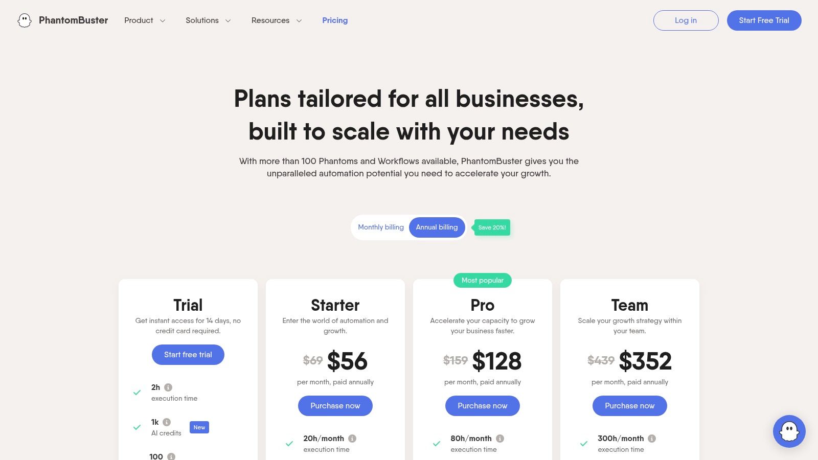 - Pricing: Starts at $69/month for the Starter plan, which gives you 20 hours of execution time.