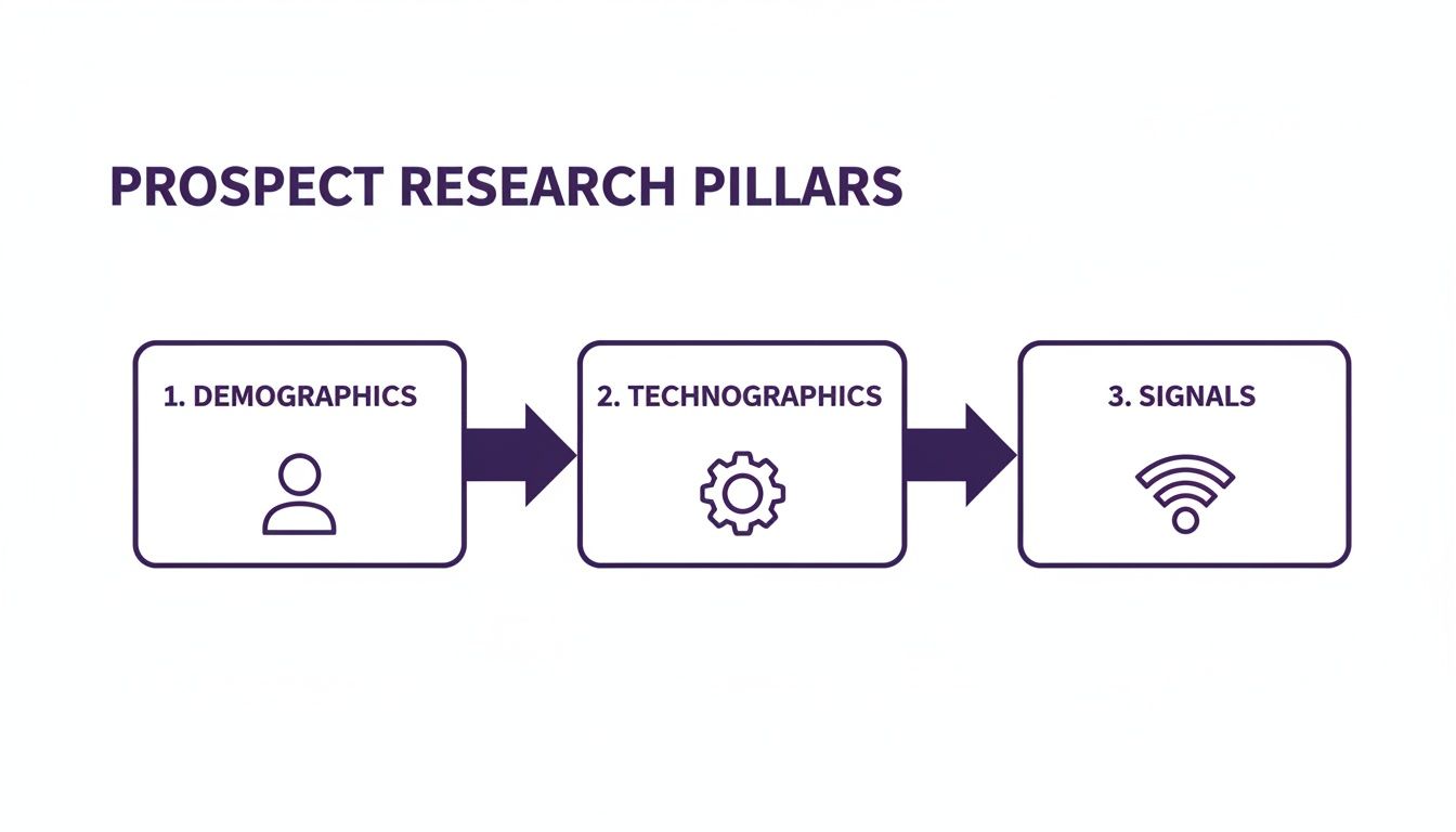 This is all about connecting the dots between who someone is, what tools they use, and what they're doing right now. You’re essentially looking for three pillars of information: demographics, technographics, and buying signals.